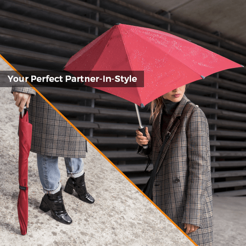 The aerodynamic shape allows this compact windproof umbrella to withstand wind speeds of up to 80 km/h.